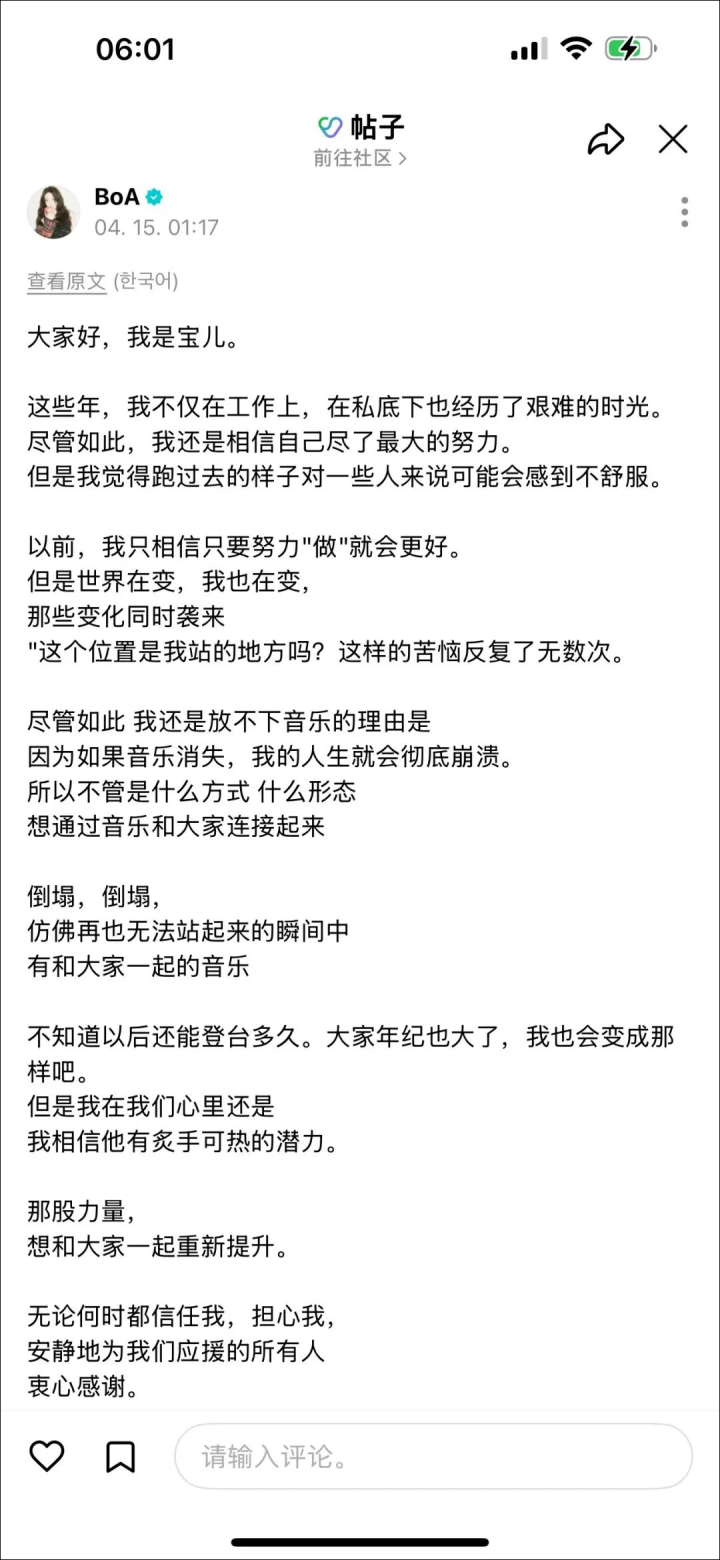 今年4月15日,宝儿在个人社交平台发文感叹:自己年纪也大了,不知道能再在舞台上再唱跳多久了。